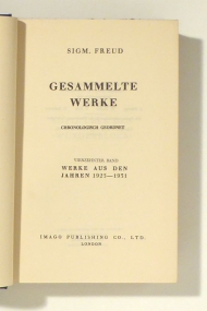 Erstausgabe. Unter Mitwirkung von Marie Bonaparte hrsg. von Anna Freud u. a. Auf dem Einband ist die Bandnummer in römischer Zahl vermerkt