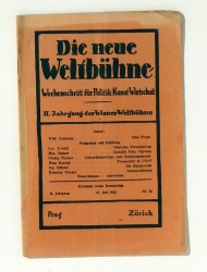 Wochenschrift für Politik, Kunst, Wirtschaft. II. Jahrgang der Wiener Weltbühne, 27. Juli 1933, Nr. 30. Prag-Zch.: 1933. 32 S., Einband: Or.br. Format: 8°. Reihe: Die neue Weltbühne, 27. Juli 1933, Nr. 30.