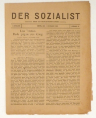 Die Zeitschrift "Der Sozialist, Organ des sozialistischen Bundes" erschien von 1909 bis 1915 in Berlin und gleichzeitig bis 1913 in Bern, herausgeben von Gustav Landauer und Margarete Faas, in Bern von revolutionären Kreisen der Schweiz. Als Redaktor in Berlin wird Richard Fischer angegeben, in Bern Margarete Faas. Mit einb er Rede von Leo Tolstoi gegen den Krieg und einem Artikel von Pierre-Joseph Proudhon über die Ursache von Krieg