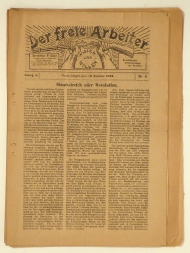 Seywald Nr. 280. Die Nummern 3, 4, 7, 8, 9, 10, 21/22, 25/26, 27/28, 29/30, 31/32, 33/34, 35/36, 37/38, 39/40, 45/49, 47/48, erschienen zwischen dem 19. Januar und 20. Dezember 1924. Herausgeber der anarchistischen Wochenzeitung war der Deutsche Friedrich Kniestedt, in Köthen/Anhalt geboren und 1913 nach Brasilien ausgewandert. Er starb 1947 in Porto Allegre. Die Zeitung befasste sich auch mit brasilianischer Politik, im Zentrum standen aber die Organisationen deutscher Einwanderer und ihre politischen und kulturellen Aktiviutäten in Brasilien, der Anarchismus und das Geschehen in Deutschland sowie der übrigen Welt. Der freie Arbeiter erschien von 1920 bis 1930. In den 1930er Jahren war er Mitbegründer der "Liga für Menschenrechte" und gab für die die Zeitschriften „Aktion“, „Zirkular“, „Alarm“ und „Das deutsche Buch“ heraus. Am Tag der Machtübernahme Hitlers, am 30. Januar 1933, organisierte Kniestedt die wohl erste antifaschistische Kundgebung in Brasilien. Selten