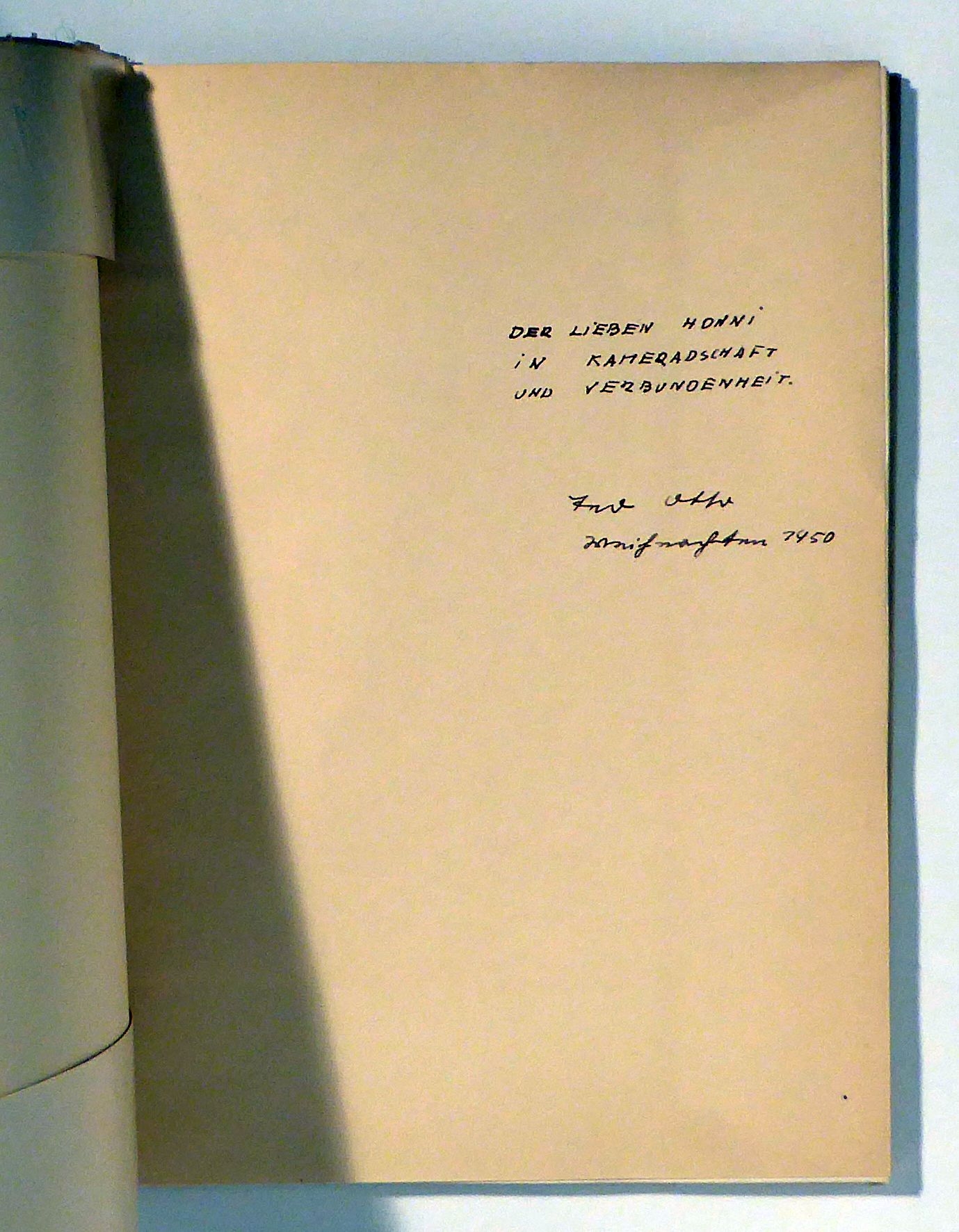 Tagebuch in Bildern. Mit einem Vorwort von Bertolt Brecht. Zch.: Europa, [1949]. 4 Bll. ; 74 Tafeln ; 1 Bl., mit einer Deckelillustration von Teo Otto auf dem Einbanddeckel. Einband: Original-Broschur, mit Pergaminumschlag. Format: 4°. Mit einer mehrzeiligen datierten eigenhändigen Widmung und Signatur von Teo Otto auf Vorsatz. Das Buch erschien gleichzeitig bei Volk und Welt (Berlin, DDR) und, mit abweichender Umschlaggestaltung, dem Europa Verlag. Die bedachte war, wie Teo Otto, während des Zweiten Weltkriegs in einem Flüchtlingslager in der Schweiz
