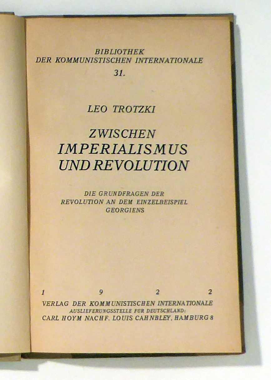 Die Grundfragen der Revolution an dem Einzelbeispiel Georgiens. Hamburg: Verlag der Kommunistischen Internationale (Hoym), 1922. 153 S., Einband: Halbleinwand. Format: 8°. Reihe: Bibliothek der Kommunistischen Internationale, 31.