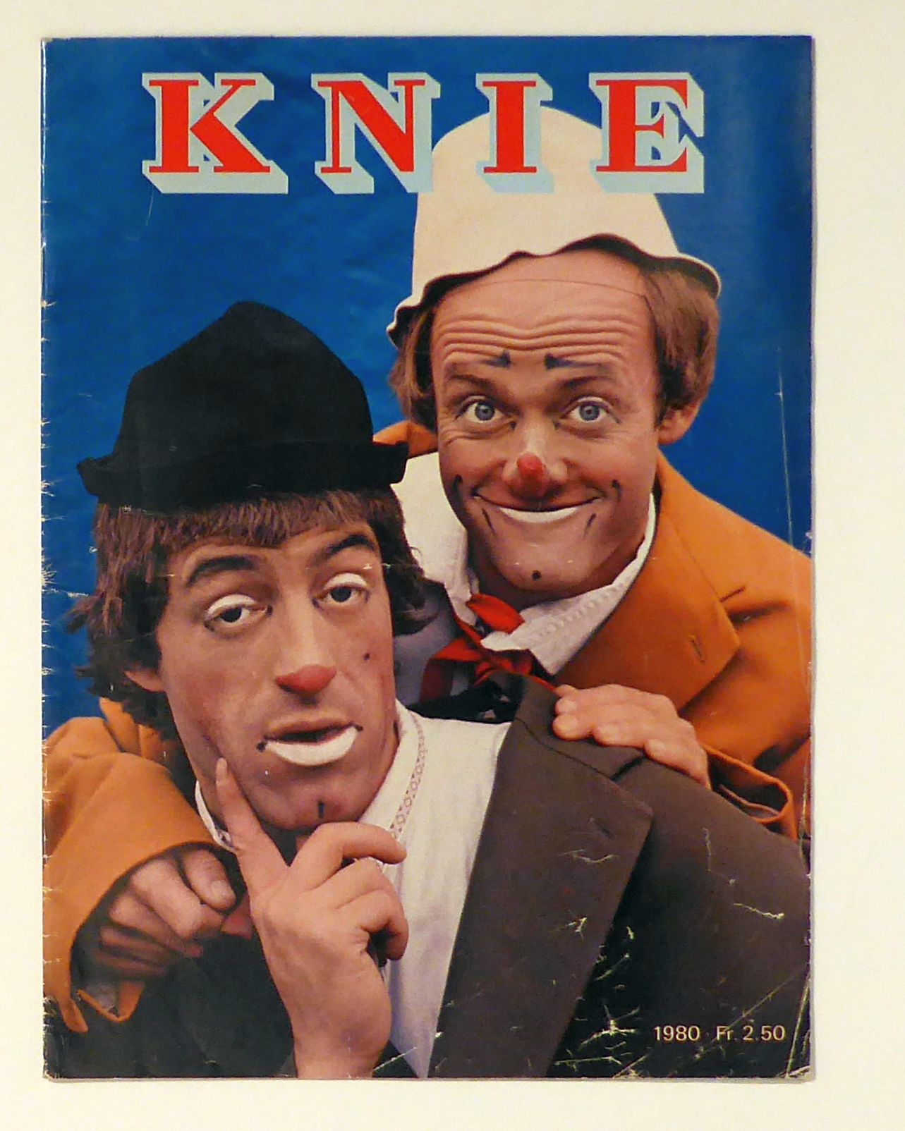 Illustrierte Circus-Zeitung: Knie bleibt Knie. Verantwortlich für Text und Bild: Kris Krenger. Rapperswil: Gebrüder Knie, 1980. 39 S., Mit Foto-Illustrationen. Einband: Farbig illustrierter Or.Umschlag; geheftet. Format: : 29,5 x 22 cm. Dreisprachig (deutsch, französisch, italienisch) . - Mit einem Beitrag von Horst Stern: "Zum 60. Geburtstag von Fredy Knie" - Ab diesem Jahrgang kleiner im Format als die vorangehenden Ausgaben der Zirkus-Zeitung