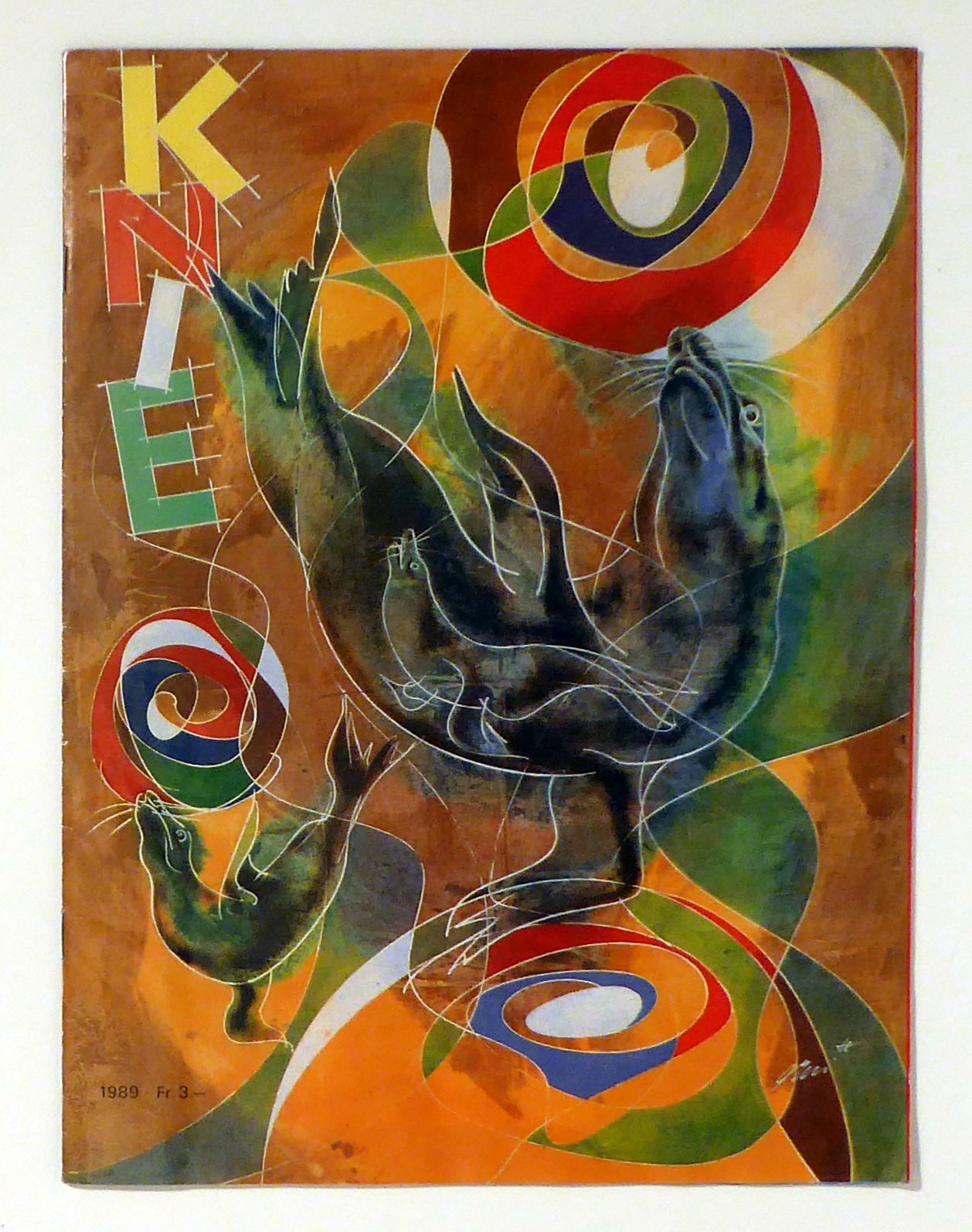 (Illustrierte Circus-Zeitung): Circus unter Wasser. Redaktion: Chris Krenger. Rapperswil: Gebrüder Knie, 1989. 38 S., mit Foto-Illustrationen und einer farbigen, ausklappbaren Beilage ("Fontajet S.A."). Einband: Farbig illustrierter Or.Umschlag; geheftet. Format: 4°. Dreisprachig (deutsch, französisch, italienisch)
