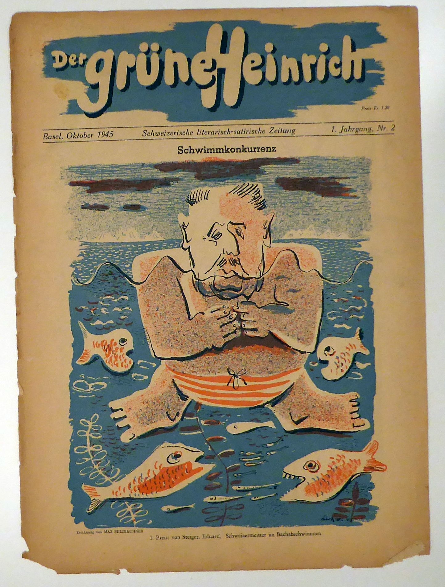 Gleich nach Ende des Zweiten Weltkriegs gegründete satirisch-humoristische Zeitschrift von der zwischen August und Dezember 1945 insgesammt 5 Nummern erschienen. Zu den Initianten gehörte die Partei der Arbei und zu ihrem Umfeld gehörende Persönlichkeiten. Zu den Autoren gehörten unter anderem C. F. Vaucher, Paul Senn, Carl A Loosli, Ernst Hohl, Peter Surava und Ludwig Hohl, zu den Illustratoren und Fotografen Max Sulzbachner, Heinrich Danioth, Charles Hindeling, Paul Iribe, Hans Erni, Irene Zurkinden, Paul Senn, Coghuf, Lindi, Hans Falk und zahlreiche andere. Mehr nicht erschienen. Vollständig sehr selten