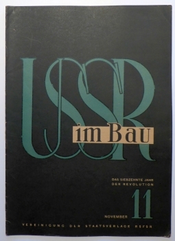 Illustrierte Monatsschrift. Moskau: Isogis, 1933. [20] Bll., mit zahlreichen, teils ganzseitigen Abbildungen nach Fotografien von Maks Alpert und Michail Prechner. Einband: Original-Broschur. Format: 2°. Reihe: UdSSR im Bau, 11, 1933.
