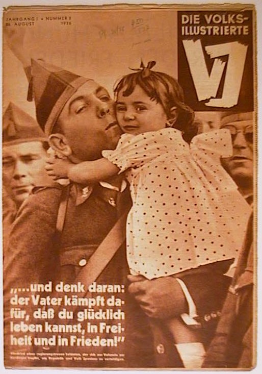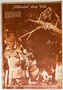 Mit einer Fotomontage von John Heartfield. Die Fotomontage zeigt eine Urwaldszene mit einem Gorilla, Francisco Franco und drei spanischen Militärs und hat die Absicht Francos, 30`000 Marokkaner gegen die republikanische Regierung zu mobilisieren zum . Prag: Jan Burger, 1936. 24 S., mit zahlreichen Abbildungen nach Fotografien. Einband: Illstr. Or.Umschlag. Format: 28 x 38 cm. Reihe: V-I (Volks-Illustrierte).