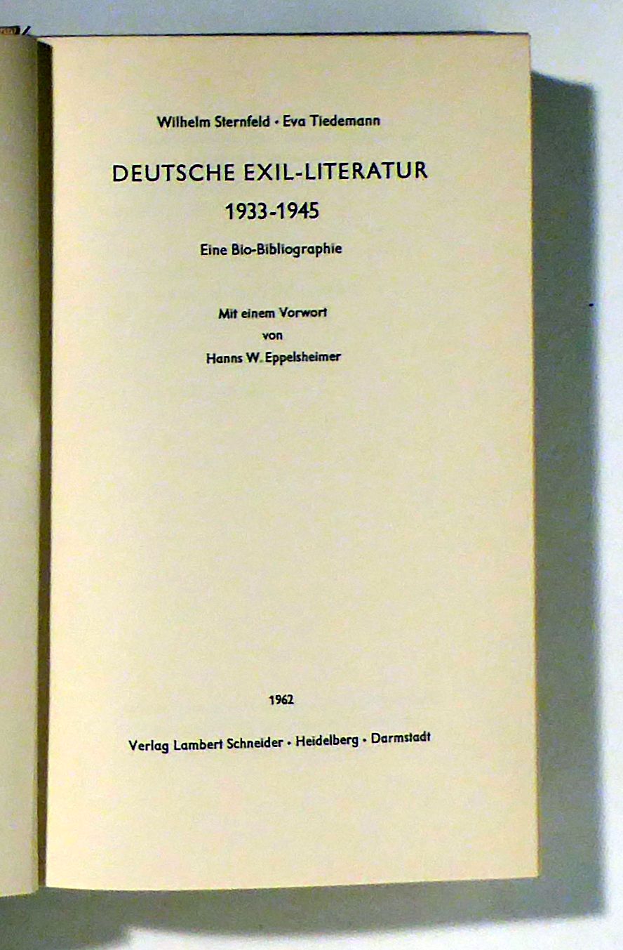 Objekt, Schlagwörter, Zeit, Sprache, Personen: Buch: Biographien, Bibliographie, Exil, Exilliteratur; 20. Jahrhundert; Deutsch; Eppelsheimer, Hanns W.