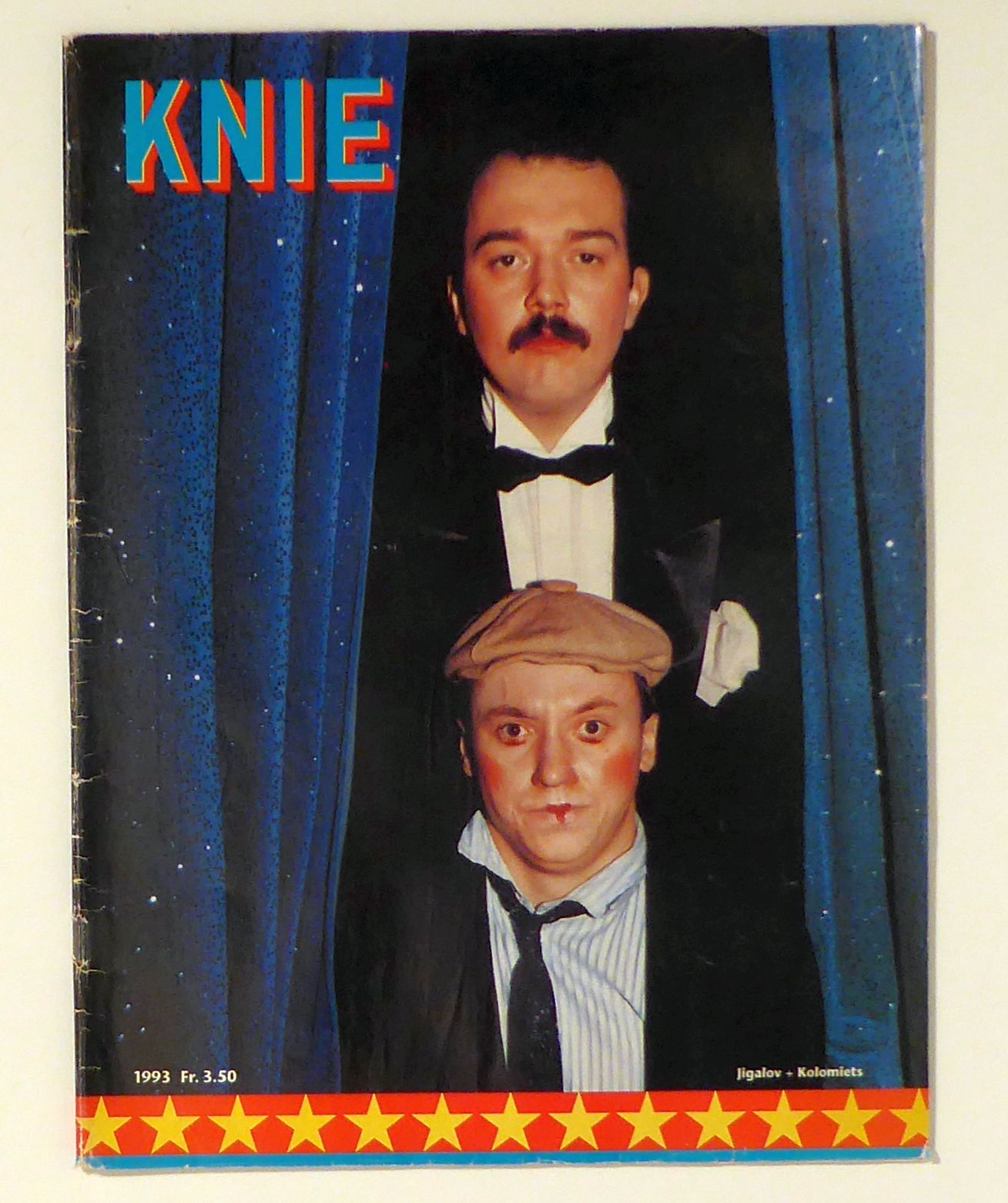 (Illustrierte Circus-Zeitung: Jigalov + Kolomiets). Rapperswil: Gebrüder Knie, 1993. 47 S., mit zahlreichen farbigen Foto-Illustrationen und einem ausklappbaren, farbigen Zirkus-Poster. Einband: Farbig illustrierter Or.Umschlag; geheftet. Format: 4°. Zweisprachig (deutsch, französisch)