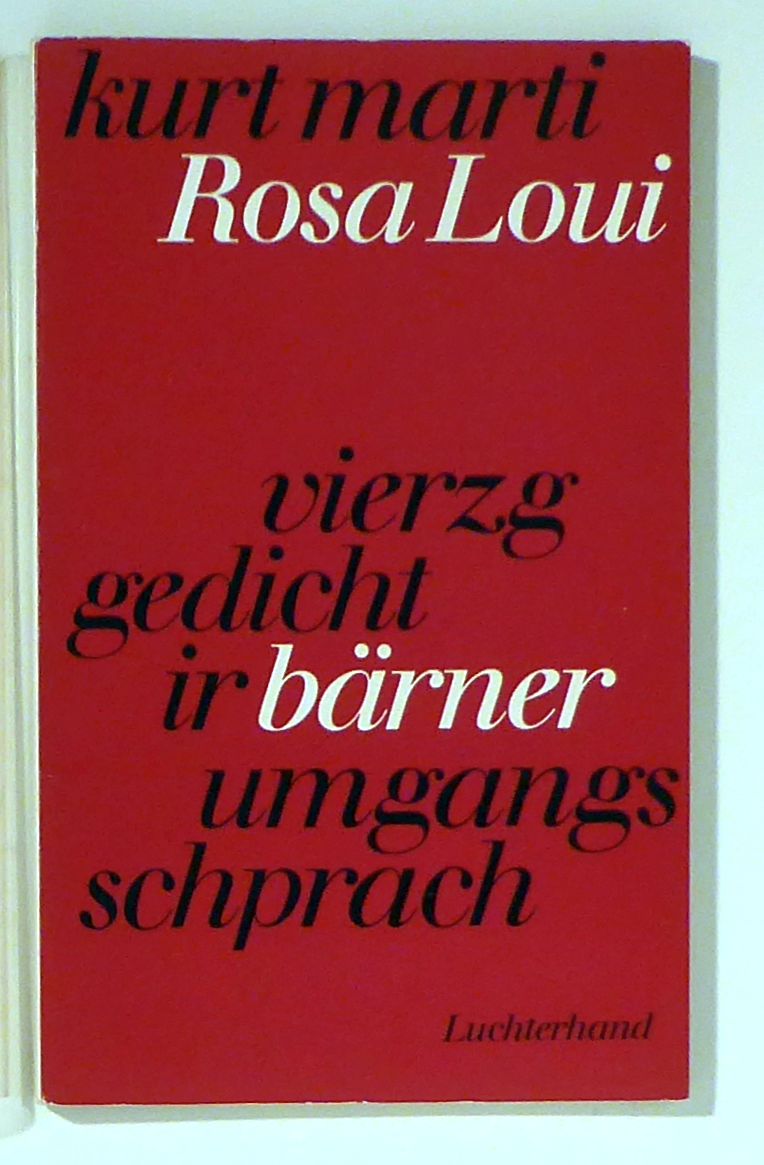Vierzg gedicht ir bärner umgangsschprach. Neuwied; Bln.: Luchterhand, 1967. 58, (1) S., Einband: Or.kt. mit Or.Plasticfolie. Format: 8°. Reihe: Edition Otto F. Walter.