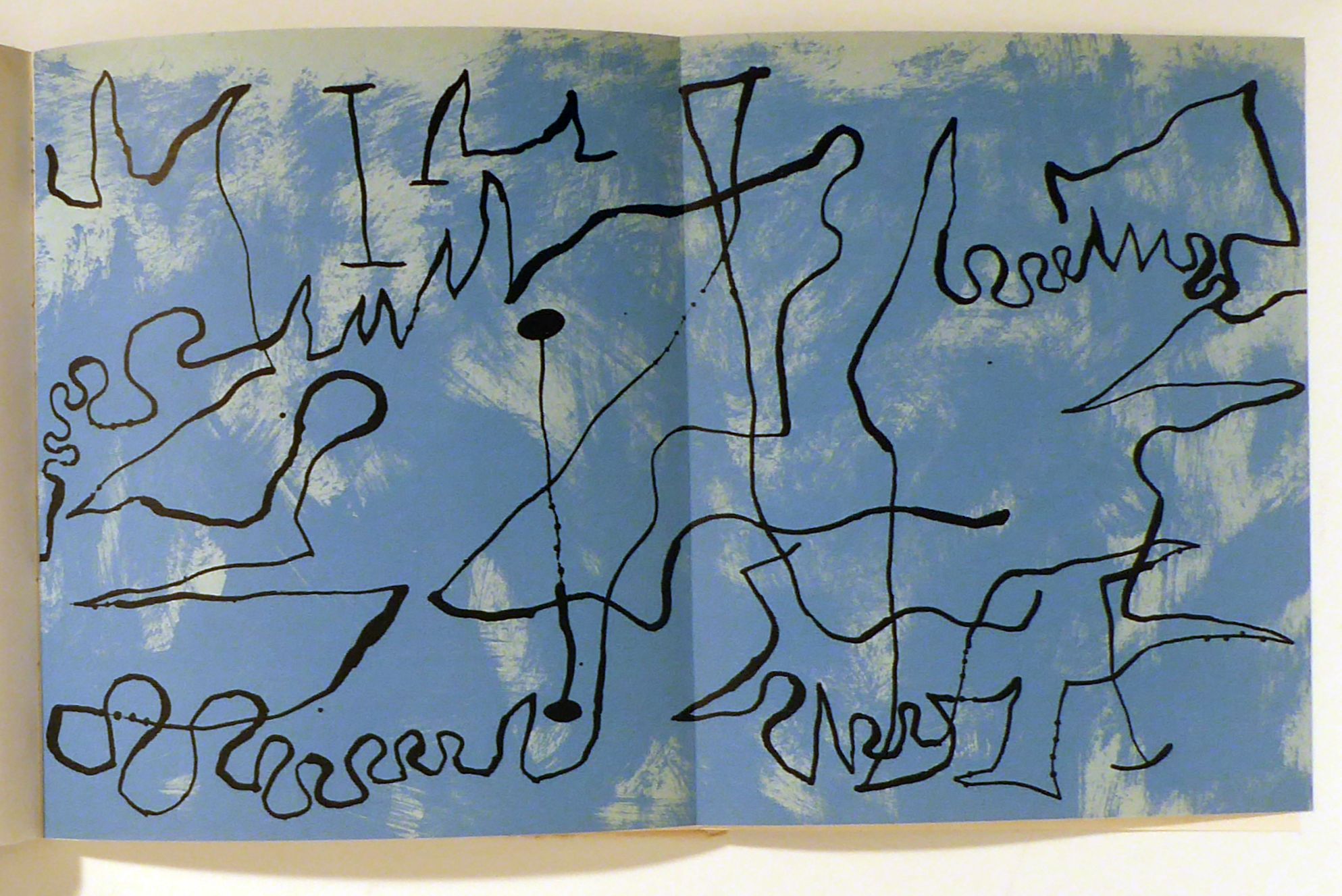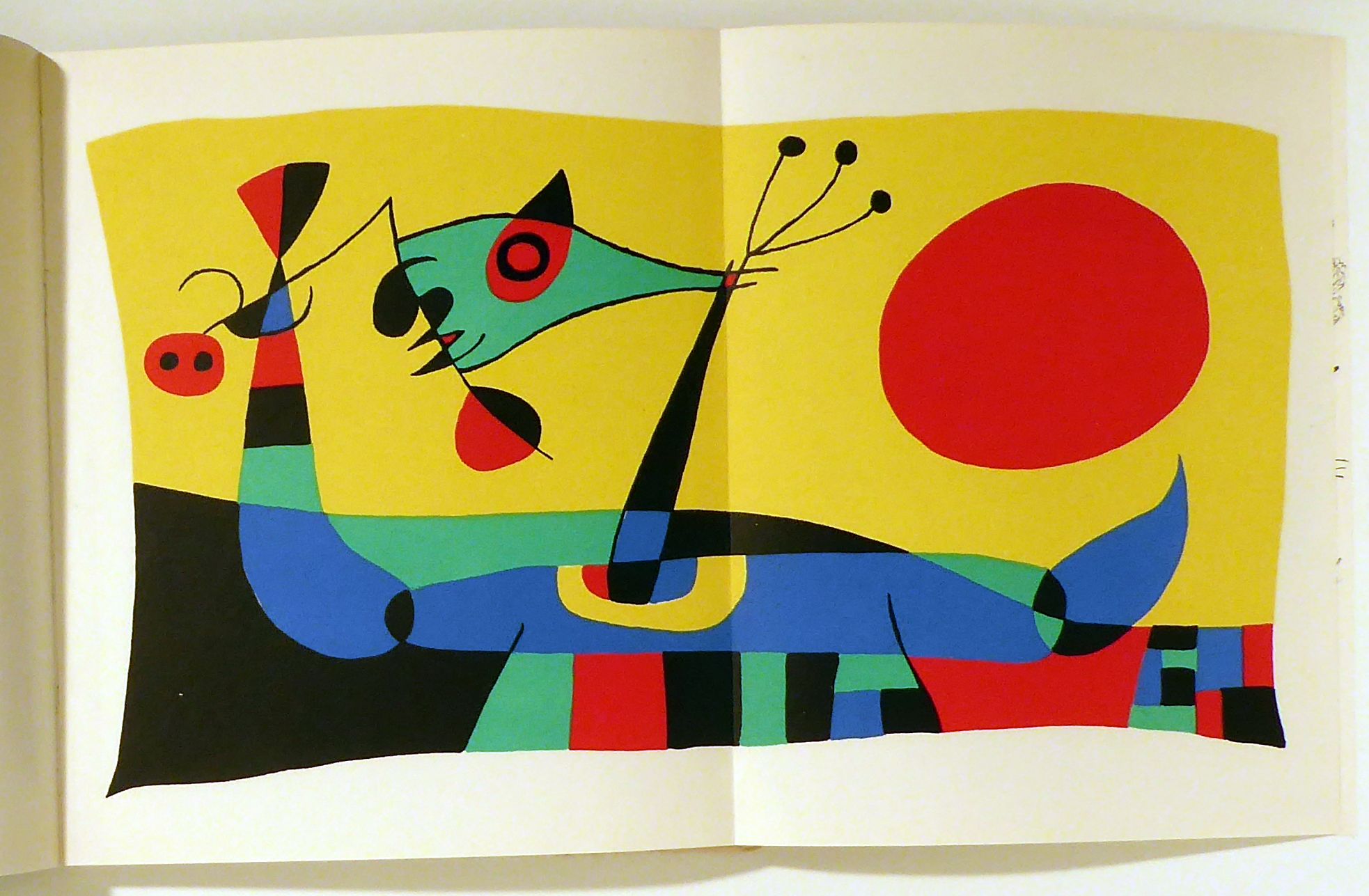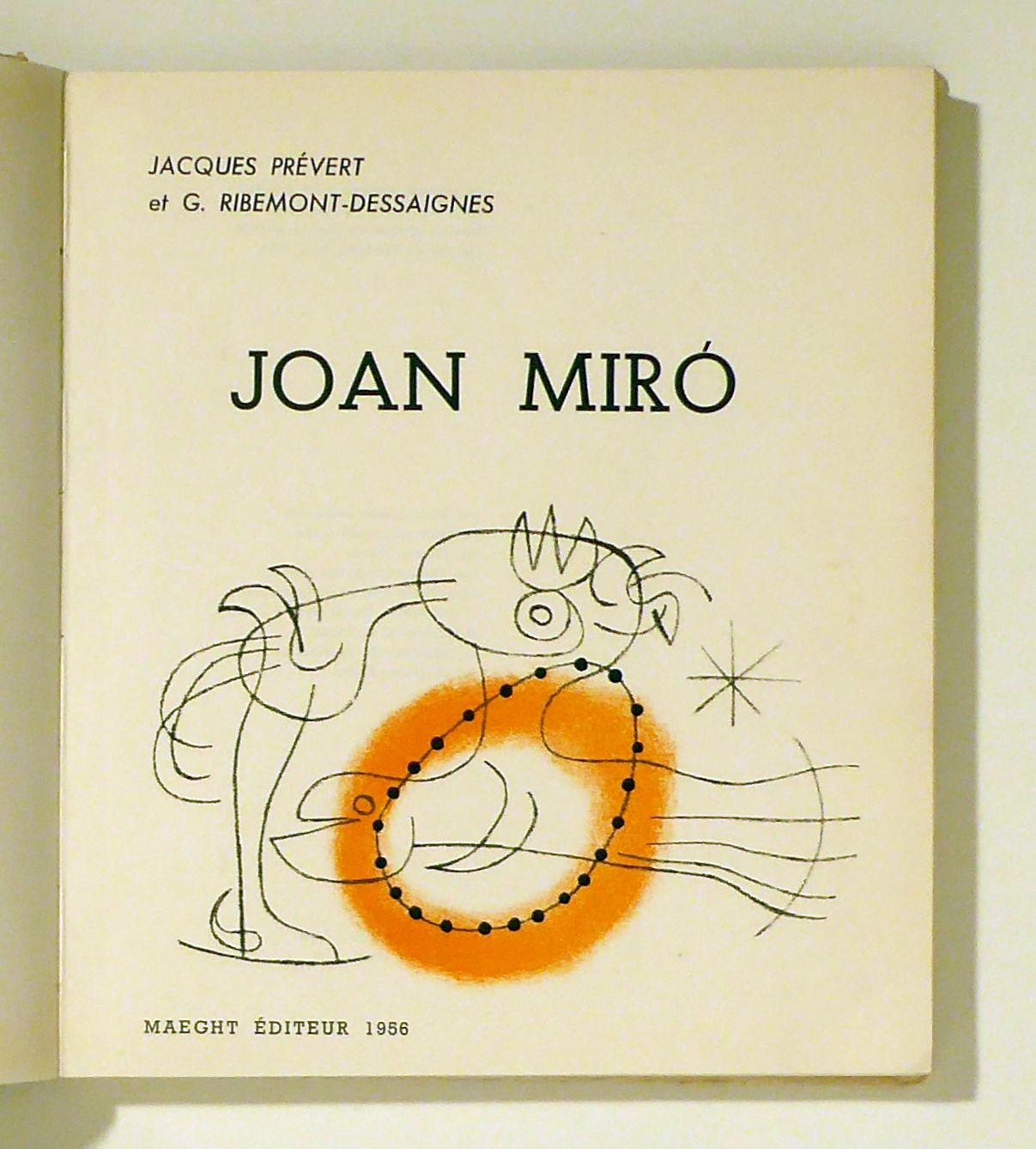 Paris: Maeght, 1956. 219 S., Einband: Original kartoniert, mit Schutzumschlag und transparenter Folie. Format: gr.8°. Erstausgabe. Mit 160 teils farbigen Abbildungen, davon 10 Original-Lithographien von Joan Miró, vier doppelblattgross, je eine auf der Vorder- und Rückkseite des Umschlags, 3 einseitige und eine als Titelseite. Mit Gedichten von Jaques Prévert sowie einem Essay von Georges Ribemont-Dessaignes. Die Lithographien druckte Mourlot frères