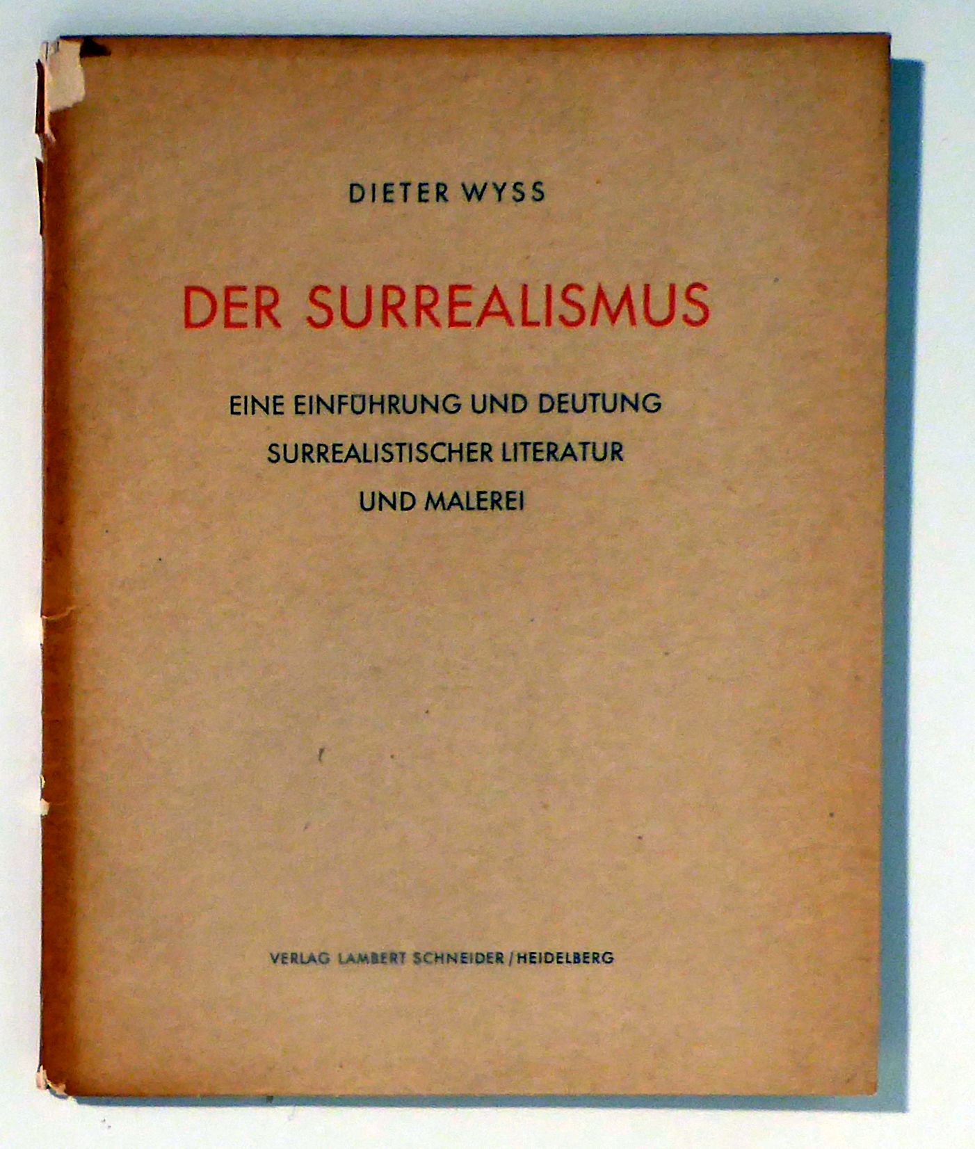 Einführung und Deutung surrealistischer Literatur und Malerei. Heidelberg: Lambert Schneider, 1950. 88 S., mit einer farbigen Tafel und 15 s/w Abbildungen auf 16 Tafeln sowie zahlreichen s/w Abbildungen im Text. Einband: Or.kt. mit Pergaminumschlag. Format: 4°. Erstausgabe. Eine Einführung und Deutung auf psychoanalytischer Grundlage. Mit Abbildungen von Werken von Viktor Brauner, Giorgio de Chirico, Salvador Dali, Max Ernst, Wolfgang Paalen, Frederic Sommer, Yves Tanguy und Dorothe Tanning. Der Autor hat das Buch Alexander Mitscherlich zugeeignet. Abgedruckt ist unter anderem die vollständige Bildfolge "Le Lion de Belfort" aus dem Roman "Une semaine de Bonté ou Les sept éléments capitaux" von Max Ernst (1934)