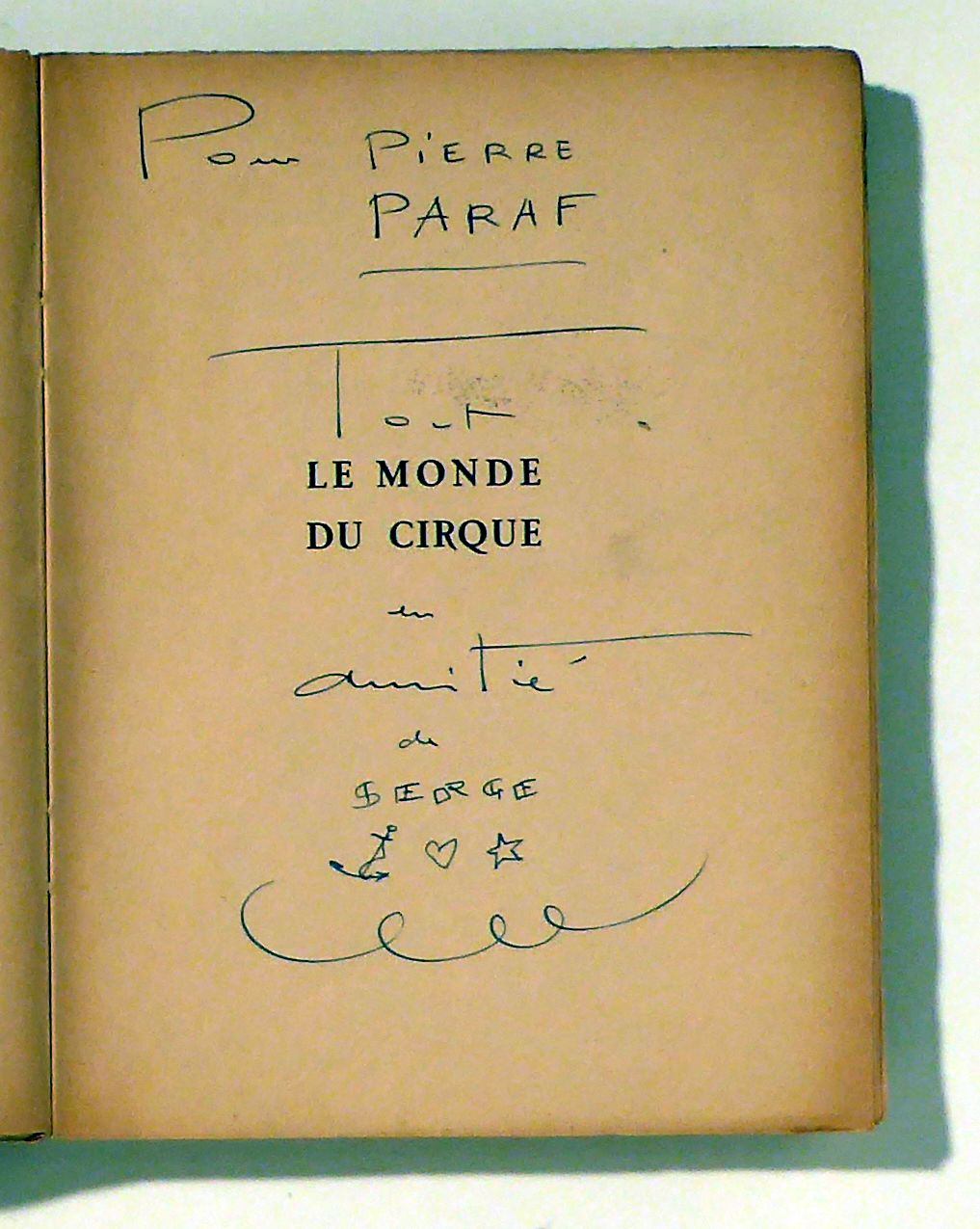 Objekt, Schlagwörter, Zeit, Sprache, Personen: Buch: Diverse, Einzeichnung, illustrierte Widmung; 20. Jahrhundert; Französisch; Paraf, Pierre
