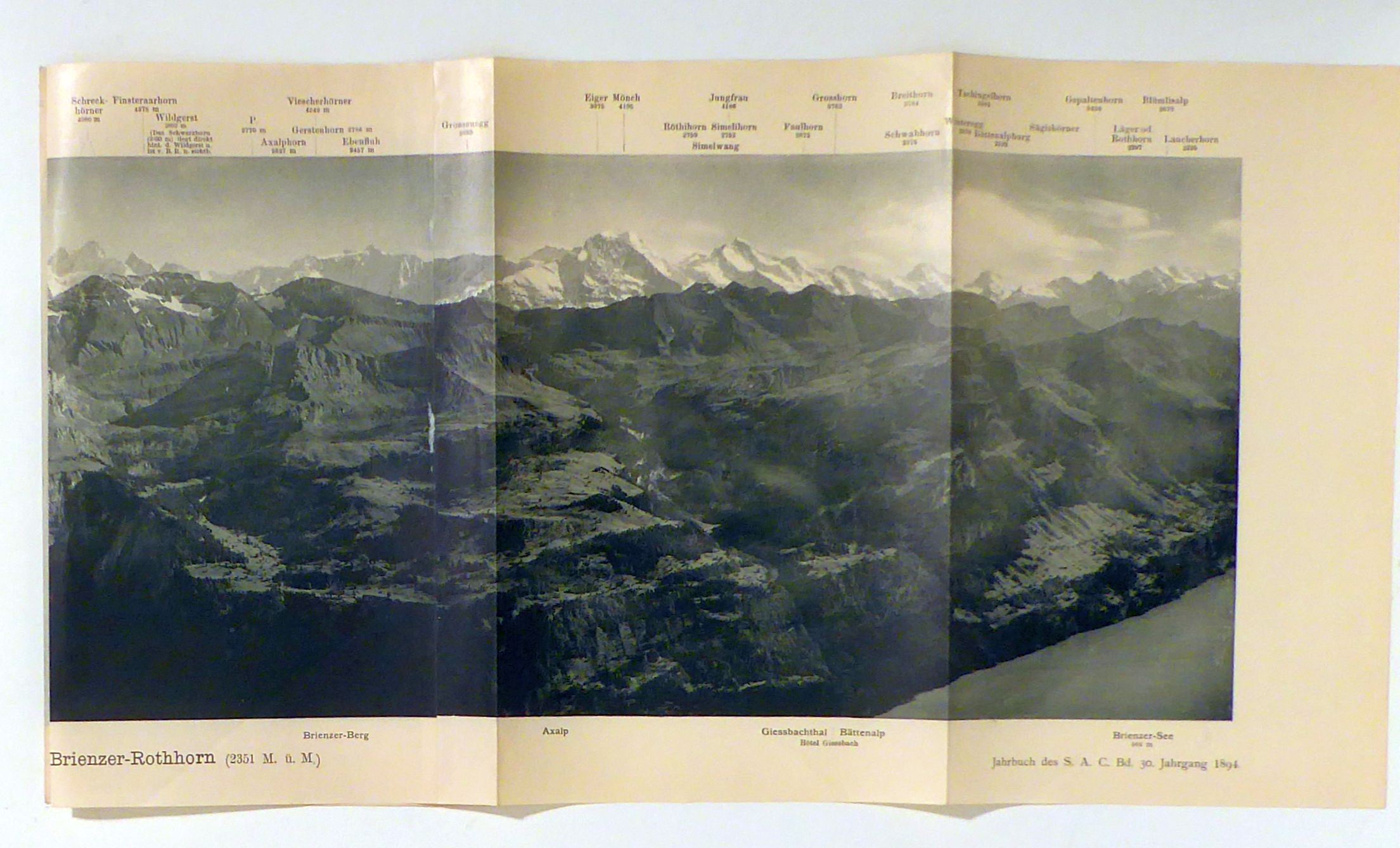 Photographische Aufnahme & Lichtdruck Zürich: Schroeder & Cie. Bern: Schweizer Alpen-Club, 1895. 1 Bl., Format: 86 x 23 cm (bxh); gefaltet 15 x 23 cm. Reihe: SAC - Jahrbuch des Schweizer Alpen-Club, Artistische Beilagen, 30. Jahrgang 1894/1895.
