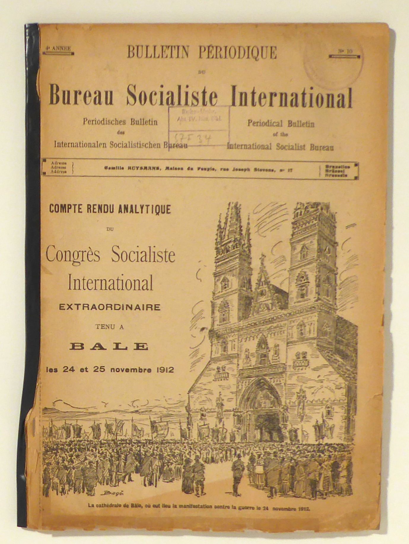 Bruxelles: Huysmans, 1912. 87 S., Einband: ohne Einband. Format: 4°. Reihe: Bulletin périodique du Bureau Socialiste International = Periodisches Bulletin des Internationalen Socialistischen Bureau = Periodical Bulletin of the International Socialist Bureau, 4e année, 10.