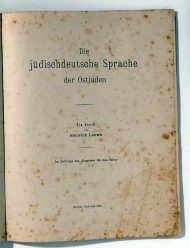 Ein Abriss. Im Auftrage des "Komitees für den Osten". Bln: Komitee für den Osten, 1915. 25 S., Einband: Pappband. Format: 4°. Im Anhang "Proben jüdischdeutscher Sprachdenkmäler" mit Texten aus dem 16. Jahrhundert bis in die Gegenwart sowie einem Literaturverzeichnis zum Thema.