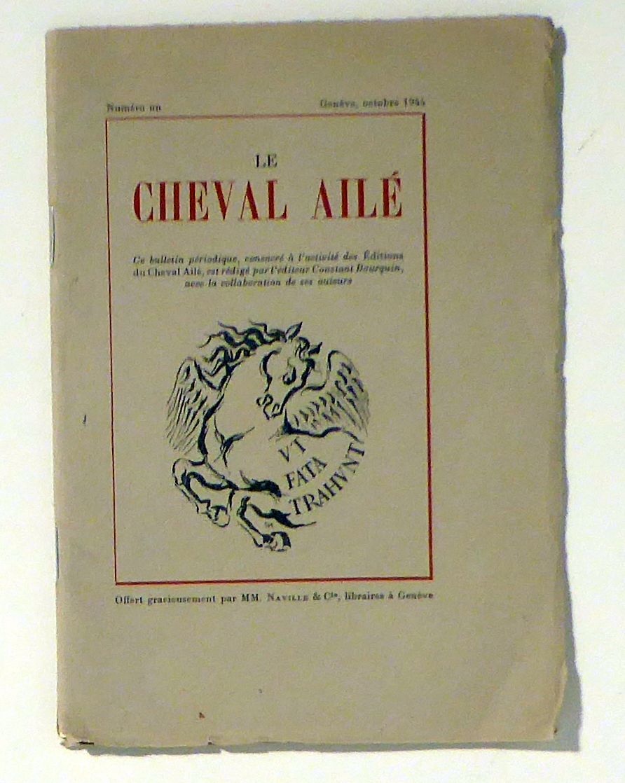Genève: Naville, 1944. 31, [1] S., Einband: Original-Broschur, klammergeheftet. Format: kl.8°. Reihe: Le Cheval Ailé. Numéro un, Genève 1944.