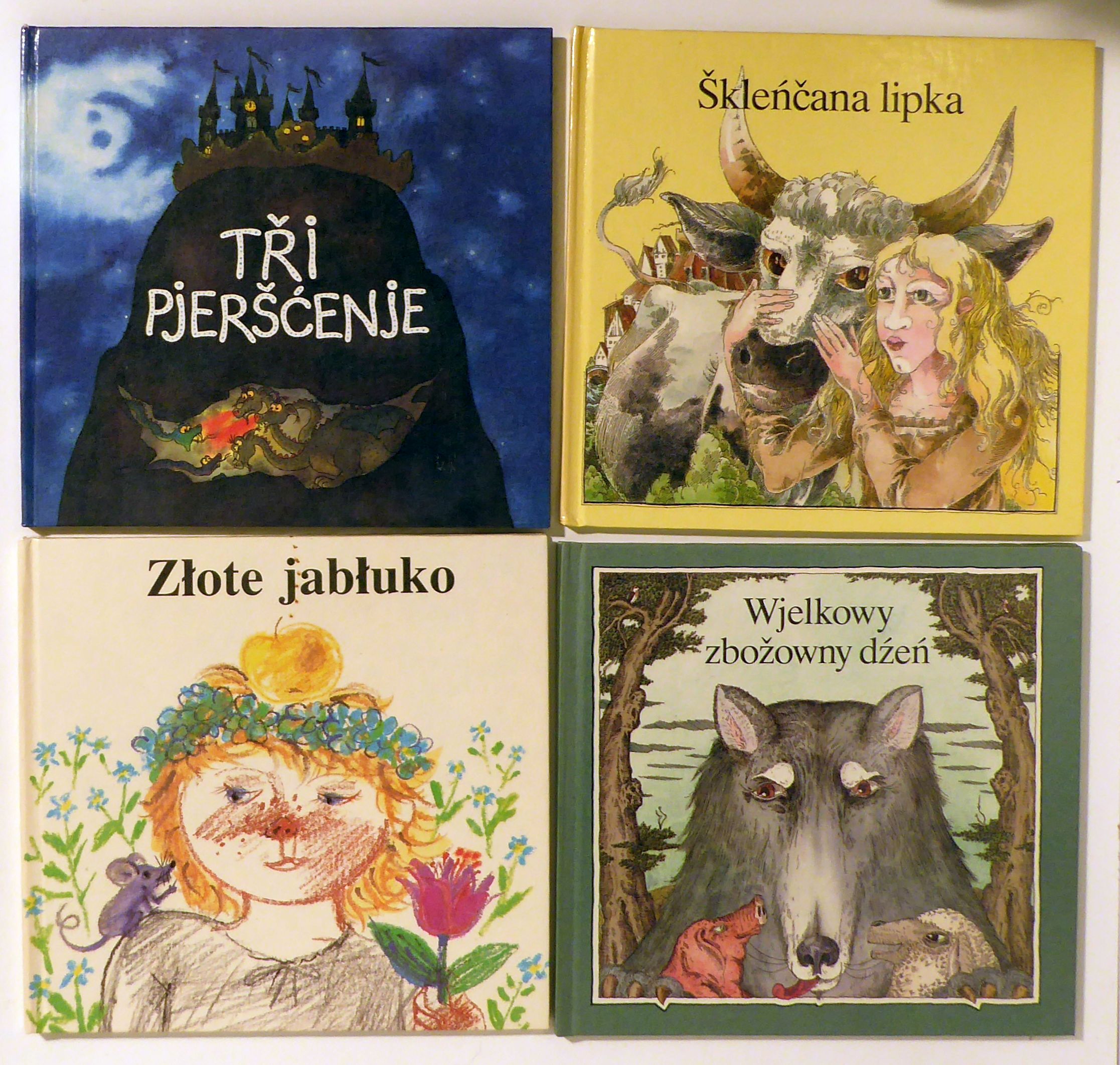 Konvolut 10 Bände aus der Reihe "Bajka" des Verlags Domowina in obersorbischer Sprache. Budyšin: Domowina, 1984-1990. 10 Bde., meist 24 S., jeder Band mit zahlreichen farbigen, meist ganzseitigen Illustrationen nach Zeichnungen von Karl-Heinz Appelmann, Iris Brankatschk, Horst Bartsch, Konrad Golz, Uwe Häntsch, Dieter Heidenreich, Gabriele Mothes, Johannes K. G. Niedlich, Gisela Röder, G. Einband: Original-Pappband. Format: 8°, quadratisch. Reihe: Bajka.