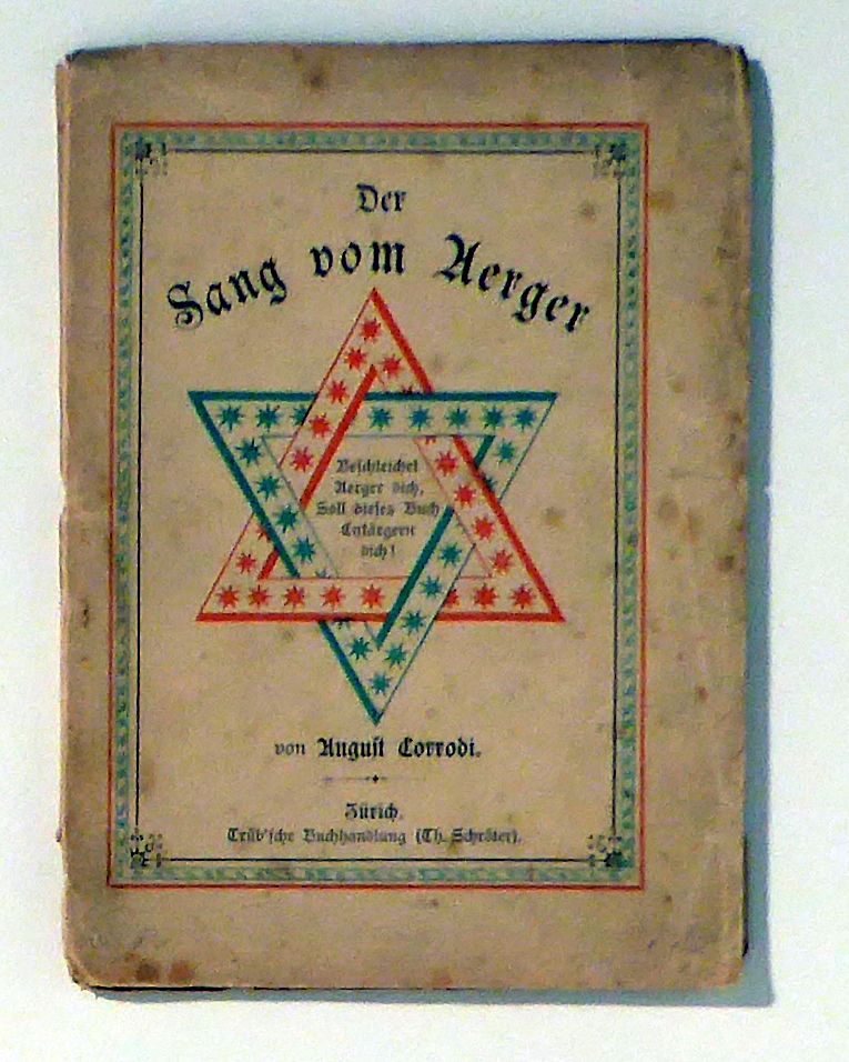Zch.: Trüb (Schröter), 1881. 96 S., Einband: Original-Broschur. Format: kl.8°. Erstausgabe. Wilpert/Gühring2, 39. Das Motto auf dem schwarz-, gold- und blindgeprägten Einband: "Beschleichet Ärger Dich - Solll dieses Buch - Entärgern Dich!"., gedruckt in Fraktur