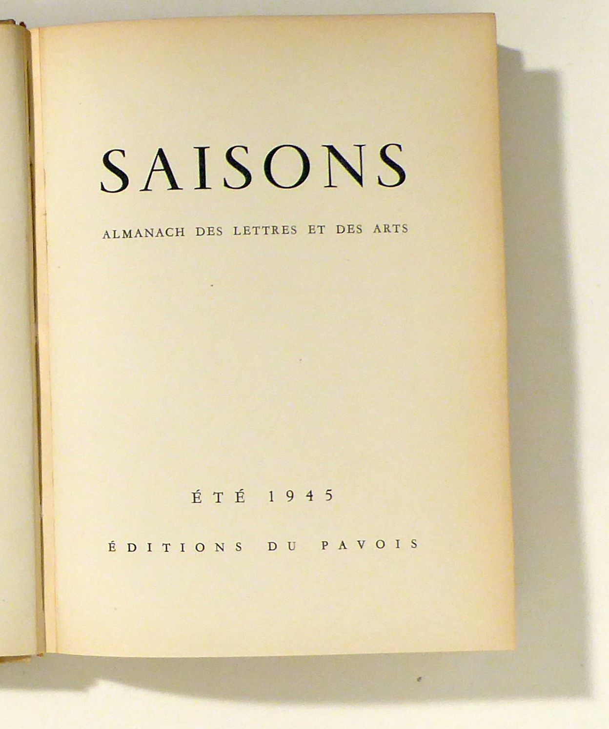 Almanach des Lettres et des Arts, été 1945. Paris: Editions du Pavois, 1945. 199, [4 ¨S., Einband: privater Halbpergament. Format: gr.8°. Reihe: Saisons, Almanach des Lettres et des Arts.