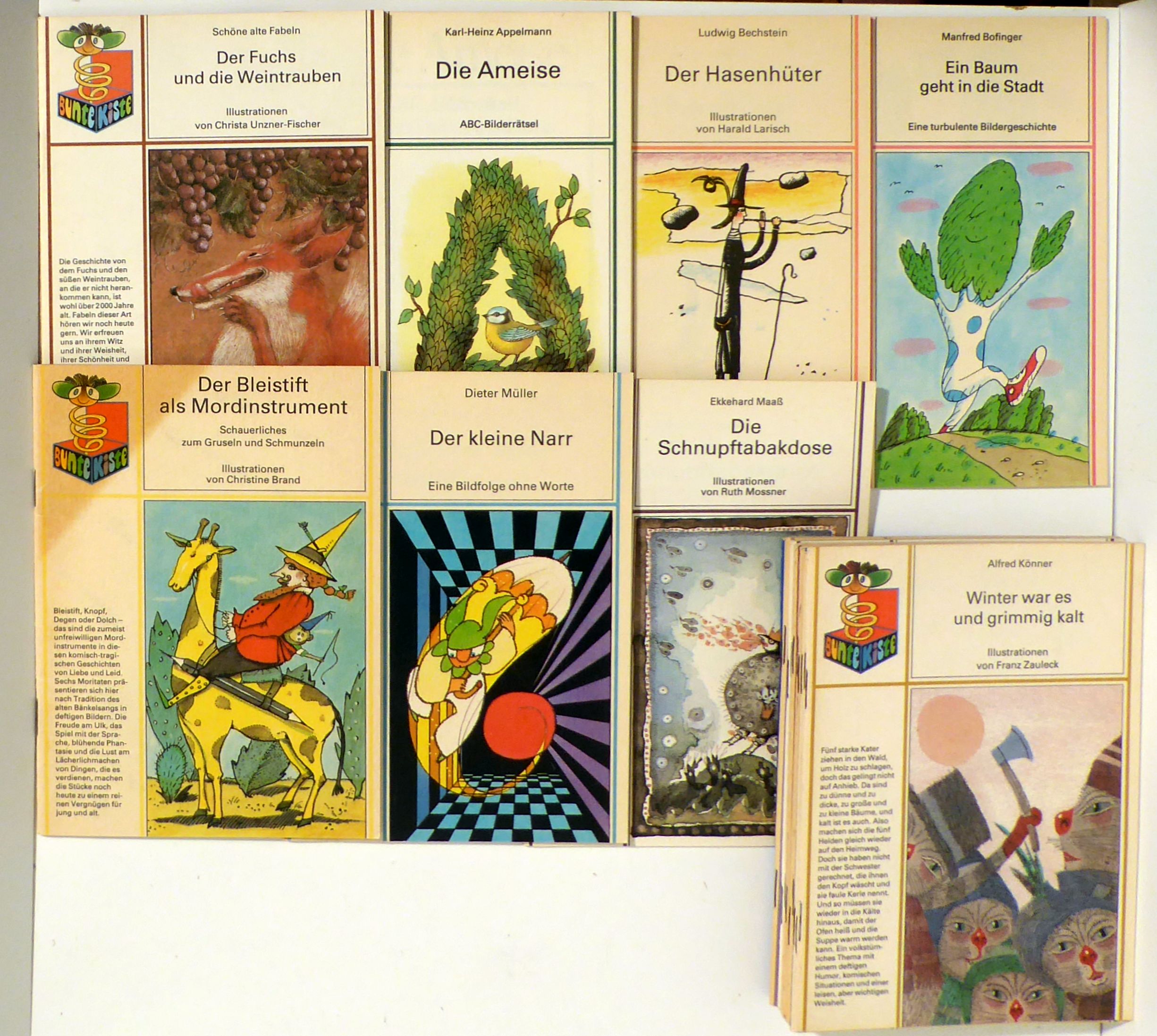 Konvolut von 17 Heften. Bln.: Altberliner Verlag, 1982-1990. 17 Hefte, zwischen 16 und 36 S., mit farbigen Illustrationen. Einband: Original-Broschur. Format: 8°. Reihe: Bunte Kiste.