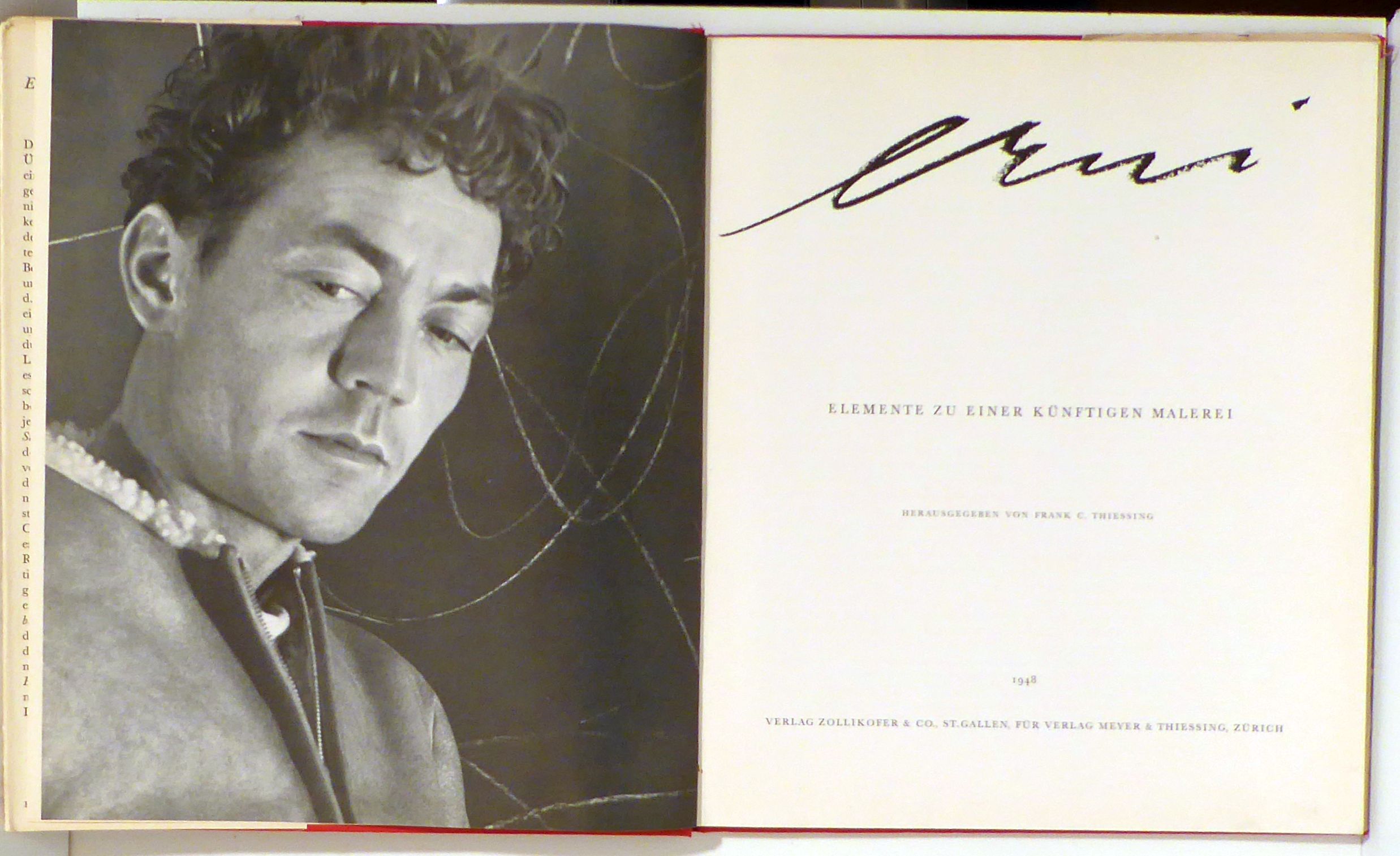 Elemente einer künftigen Malerei. Herausgegeben von Frank C. Thiessing. 4. bis 5. Tausend. St. Gallen: Zollikofer & Co., 1948. 103 S., mit 75 schwarzen und 13 farbigen teilweise ganzseitigen Reproduktionen. Einband: Or.Ln. mit Schutzumschlag. Format: 4°.