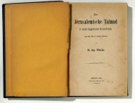 Zch.: Verlags-Magazin (J. Schabelitz), 1880. VIII, 297, [1] S., Einband: Halbleinwand. Format: 8°. Erstausgabe. August Wünsche, deutscher Christ (1839-1913) hat sich Zeit seines Lebens fast ausschliesslich mit hebraistischen Studien befasst. Nach dem vorliegenden jerusalemischen Talmud übersetzte er auch den babylonischen Talmud und editierte eine fünfbändige Anthologie hebräischer Texte (Aus Israels Lehrhallen)
