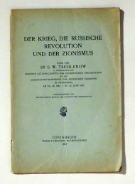 Rede von E.W.Tschlenow auf der Delegierten-Konferenz der russischen Zionisten in Petrograd am 24.-30. Mai (6.-12. Juni) 1917. Copenhagen: Truelsen, 1917. 24 S., Einband: Original-Broschur. Format: 8°. Herausgegeben.vom Kopenhagener Bureau der Zionistischen Organisation.