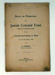 Vortrag. Wien: Jüdischer Kolonisationsverein, 1906. 16 S., Einband: Original kartoniert. Format: gr.8°. Reihe: Publikation des Jüdischen Kolonisationsvereines in Wien, 2.