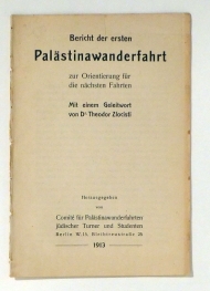 zur Orientierung für die nächsten Fahrten. Mit einem Geleitwort von Theodor Zlocisti. Bln.: Comite für Palästinawanderfahrten Jüdischer Turner und Studenten, 1913. 32 S., Einband: ohne Einband. Format: 8°.
