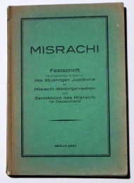 Festschrift hrsg. anlässlich des 25jährigen Jubiläums der Misrachi-Weltorganisation vom Zentralbüro des Misrachi für Deutschland. Bln.: 5687 [1927]. 204 S., Einband: Original kartoniert. Format: 8°. Texte teilweise in hebräischer Sprache