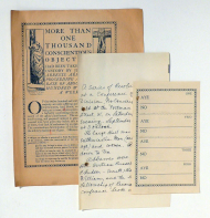 Printed for the Co-Conscription Fellwoship. London: National Labour Press, [1916]. [4] S., Einband: Einblatt. Format: gr.8°. vgl. http://hpcanpub.mcmaster.ca/no-conscription-fellowship-leaflet-1916-2. Beiliegend handschriftliche Notiz über die "Conference of the London Division, No-Conscription Fellwoship, hold at the 'Portman Rooms', Baker Street, W., on Saturday Afternoon & Evening, September 23rd 1916", mit Reden unter anderen von Bertrand Russell
