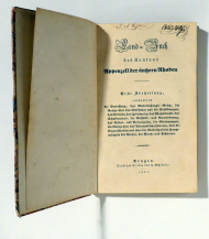 den Schuldentrieb, die Auffalls- und Gantordnung, das Sitten- und Polizeigesetz, die Ehesatzungen, die Gesetze über das Vormundschatswesen, über die Liegenschaften und über die Währschaft bei Hauptmängeln des Viehes, der Pferde und Schweine. Trogen: Jos(ef) Schläpfer, 1837. 131, (29) S., mit einer mehrfach gefalteten lithographierten Tafel im Anhang sowie einem ausführlichen Register. Einband: Pappband der Zeit. Format: 8°. Barth 24841. Eine erste Version des Landbuchs erschien 1824. Dieses geht, wie alle anderen "Landbücher" der Schweiz, auf das appenzellische Landbuch von 1409 zurück Die Tafel werden die "Grundsätze des Erbrechts unter Hinweisung auf die Ziffern des Stammbaums" (bis zur vierten Seitenlinie) sowie die Blutverwandschaftsgrade auf Erbfolge" dargestellt