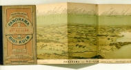 Aufnahme dch. H(einrich) Keller. Stich der Conturen dch. X(aver) Imfeld, des Vordergrundes von J J. Hofer. Zch.: H[einrich] Keller's geographr. Verlag, [1879]. Bll., mehrfach gefaltet, zwei farbig lithographierte Panoramen in 2 Abteilungen auf beiden Seiten des Blattes. Einband: Or.Hlwd.-Mappe. Format: 94x16 cm (bxh), gefaltet 14x20 cm. Hauri (Hofer & Burger) 476. Montiert in einer Or.Halbleinenmappe mit einem montiertem Titelschildchen mit dem Vermerk "Vollständige Rundsicht" sowie der Warnung "Vor Nachstich wird gewarnt"