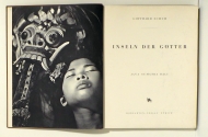 Java Sumatra Bali. Zch.: Morgarten, 1941. 212, (2) S., mit zahlreichen Abbildungen nach Fotografien. Einband: Original-Leinwand, mit Schutzumschlag. Format: gr.8°. Erstausgabe. Heidtmann 15128. Die Erstausgabe des berühmten Fotobandes von Gotthard Schuh, der - in neuer Fassung - 1954 gleichzeitig bei der Büchergilde Gutenberg und im Europa Verlag, Zch., erschien. Diese vom Zürcher Grafiker Heiri Steiner gestaltete Erstausgabe unterscheidet sich wesentlich von der späteren Fassung, sowohl was die Bilder und die Behandlung des Bildes als auch was den Text betrifft. Am auffallendsten ist, dass hier die Bilder, wo sie illustrierend sind, randangeschnitten und eher grossflächig verwendet werden, im Gegensatz zu den Bildern, die eher den Text erläuternden, Marginalien-Charakter, haben, die innerhalb des Satzspiegels und nicht randangeschnitten angeordnet sind. Unübersehbar ist schliesslich eine eher gesellschaftskritische Haltung gegenüber den kolonialistischen Verhältnissen im Lande sowie ein viel zurückhaltender Umgang im Bild mit der Nacktheit der Frauen. Noch deutlicher als im Bild, wird die Kritik des Fotografen an den herrschenden sozialen Verhältnissen im Text. Das Buch ist aber auch verlagshistorisch von Bedeutung. Es erschien zu einer Zeit, in der die Schweiz vom deutschsprachigen Buchmarkt abgeschnitten war und ein Export (ins Dritte Reich) nahezu ausgeschlossen. Es war eines der seltenen damals erschienenen Bücher, die sich nicht nur auf die Schweiz besannen, sondern auch mit dem Ausland beschäftigten und sogar im Ausland - als Plantagenbesitzer - lebende Schweizer kritisierte. Mit Schutzumschlag - mit einem im Buch nicht verwendeten Bild. Selten
