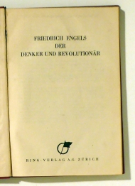 Redaktion von Willi Schulz. Zürich: Ring-Verlag, 1935. 164, (3) S., mit 4 (von 7) Tafeln. Einband: Roter Or.Pbd. Format: 8°. Mit Aufsätzen von E. Czóbel, M. Mitin, W. Jegorschin, F. Teleschnikow, D. Rosenberg, S. Budkiewitsch, F. Schiller, N. Tschemodanow und R. Schor
