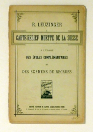 Für Fortbildungsschulen und Rekrutenprüfungen = A l'usage des écoles complémentaires et des examens de recrues. Bern: Kümmerly & Frey und A. Francke, [1900]. 1 Bll., mehrfarbige Reliefkarte mit eingezeichneten, aber nicht beschrifteten Orten und Eisenbahnlinien sowie Bergen und Gewässern.. Einband: Original kartoniert. Format: 78x60, gefaltet 13x20,5 cm. Massstab 1:530'000