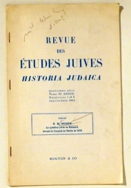 Separatdruck aus "La revue des études juives. Historia Judaica", quatrième série, tome III (CXXIII), Fascicules 1 et 2. Den Haag: Mouton, 1964. S. 85-124, Einband: Original-Broschur. Format: gr.8°. Reihe: La revue des études juives.
