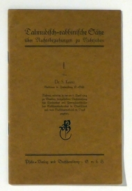 1: Referat, erstattet in der am 8. April 1924 zu Breslau stattgehabten Versammlung des Vorstandes und Zentralausschusses des Rabbinerverbandes in Deutschland und vom Rabbinerverband in Druck gegeben. [Berlin]: Philo-Verlag, [1925]. 28, [1] S., Einband: Original-Broschur. Format: 8°. gedruckt in Fraktur