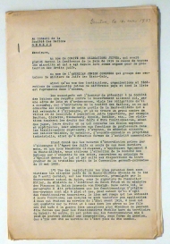 [=Antrag an den Völkerbund gegen die Regierung von Deutschland]. s.l.: s.n., 1933. 6 Bl., Einband: lose Bogen. Format: 4°. Hektografiertes Schreiben in französischer Sprache an den Völkerbund (handschriftlicher Vermerk: Genève, le 16. mai 1933), in dem Leo Motzkin, Président du Comité des Délégations Juives [Paris], und Emil Margulies, Président du Parti Juif en Tchécoslovaquie [Prague], im Namen mehrerer jüdischer Organisationen Deutschland wegen Verletzung der Rechte von Juden in Oberschlesien, namentlich Beuthen, Gleiwitz, Hindenburg, Oppeln und Ratibor, anklagen. Die Massnahmen und bereits erlassenen antijüdischen Gesetze werden in aller Ausführlichkeit beschrieben. Der Völkerbund wird aufgefordert, Massnahmen gemäss der Resolution vom 27. Juni 1921 zu treffen. Die Eingabe erfolgte fast gleichzeitig mit der Bernheim-Petition gegen Deutschland
