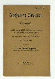 Gedächtnissrede bei der vom Vereine für jüdische Geschichte und Literatur in Berlin veranstalteten Centenar-Feier im grossen Saale der Gesellschaft der Freunde am 1. Oktober 1901. Bln.: Rosenthal, 1902. 20 S., Einband: Original-Broschur. Format: 8°. gedruckt in Fraktur