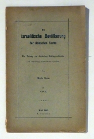 Ein Beitrag zur deutschen Städtegeschichte; mit Benutzung archivalischer Quellen. [Heft] II Kiel. Kiel: Fiencke, 1892. 54 S., Einband: Original-Broschur. Format: 8°. Reihe: Die israelitische Bevölkerung der deutschen Städte, Heft II, Kiel.