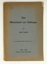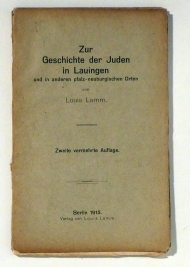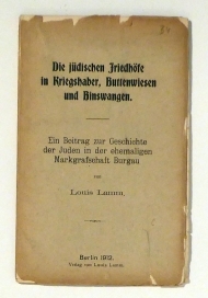 Ein Beitrag zur Geschichte der Juden in der ehemaligen Markgrafschaft Burgau. Bln.: Lamm, 1912. 40 S., Einband: Interims-Broschur. Format: 8°. Reihe: Zur Geschichte der Juden im bayerischen Schwaben, 1.