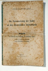 Denkschrift im Auftrage des Verbandes der Deutschen Juden gefertigt von seinem ersten Schriftführer Justizrat Bernhard Breslauer. Bln.: Levy, 1911. 22 S., Einband: ungebunden. Format: 4°.