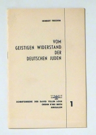 Ein Kapitel jüdischer Selbstbehauptung in den Jahren 1933/1938. Jerusalem: David Yellin Loge, 1963. 18 S., Einband: Original-Broschur. Format: 8°. Reihe: Schriftenreihe der David-Yellin-Loge, Orden B'nei Brith, Jerusalem, 1.