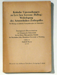 Ein Beitrag zur jüdischen Naturphilosophie des Mittelalters. Lpz.: Teicher, 1935. 55 S., Einband: Original-Broschur. Format: gr.8°.