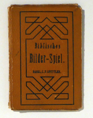 Basel: C. F. Spittler, um 1830. 16 S., 60 Bl., Einband: Original kartoniert. Format: kl.8°. 60 Spielkarten aus Papier, 8x11 cm, mit einer s/w Illustration zu einer Bibelstelle, dazu Broschüre von 16 Seiten mit Spielanleitung und den Bibelstellen zu den Karten in einer Kartonmappe mit gepräter Verzierung und Titel, gedruckt in Fraktur