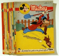 Konvolut von 42 Heften in französischer Sprache. Bruxelles: Editions du Pont-Levis, 1953-1955. 42 Hefte, je 18 S., jedes Heft durchgehend und zumeist farbig illustriert. Einband: Original broschiert. Format: 4°. Reihe: Mickey magazine, nos. 142-161, 166, 167, 209, 211, 212, 214, 215, 224, 226-228, 230-232, 234, 237, 242-246, 249.