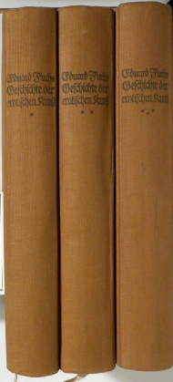 Erweiterung und Neubearbeitung des Werkes 'Das erotische Element in der Karikatur' mit Einschluss der ernsten Kunst.. Mnch.: Albert Langen, 1912-1924. 3 Bde. 412, XXII; 7, [1], 439, [1]; 7, [1], VIII, 400, [8] S., mit insgesamt 1101 Abbildungen und 137 teils doppelblattgrossen und teils mehrfarbigen Tafeln. Einband: Original-Leinwand, mit Lesebändchen. Format: 4°. Reihe: Geschichte der erotischen Kunst in Einzeldarstellungen.