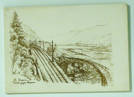 22 lose Lithographien von H[ans] L[engweiler]. o.O.: 1952-1956. 22 lose Blätter, Format: 8°, quer. 22 lithographierte Tafeln in Braunton, im Stein datiert und monogrammiert mit den Initialen H.L. Abgebildet sind Orte, Gebäude und Abschnitte der Gotthardstrecke zwischen Arth-Goldau im Kanton Schwyz und Riva San Vitale im Kanton Tessin. Vermutlich im Auftrag der SBB geschaffene Hommage an die berühmte Eisenbahnstrecke, gezeichnet zwischen 1952 und 1956 zu verschiedenen Jahreszeiten. Ein Blatt, mit der Ansicht von Bellinzona mit Bahnhof und Castello San Michele (Uri) sowie eine illustrierte Klappenmappe fehlt